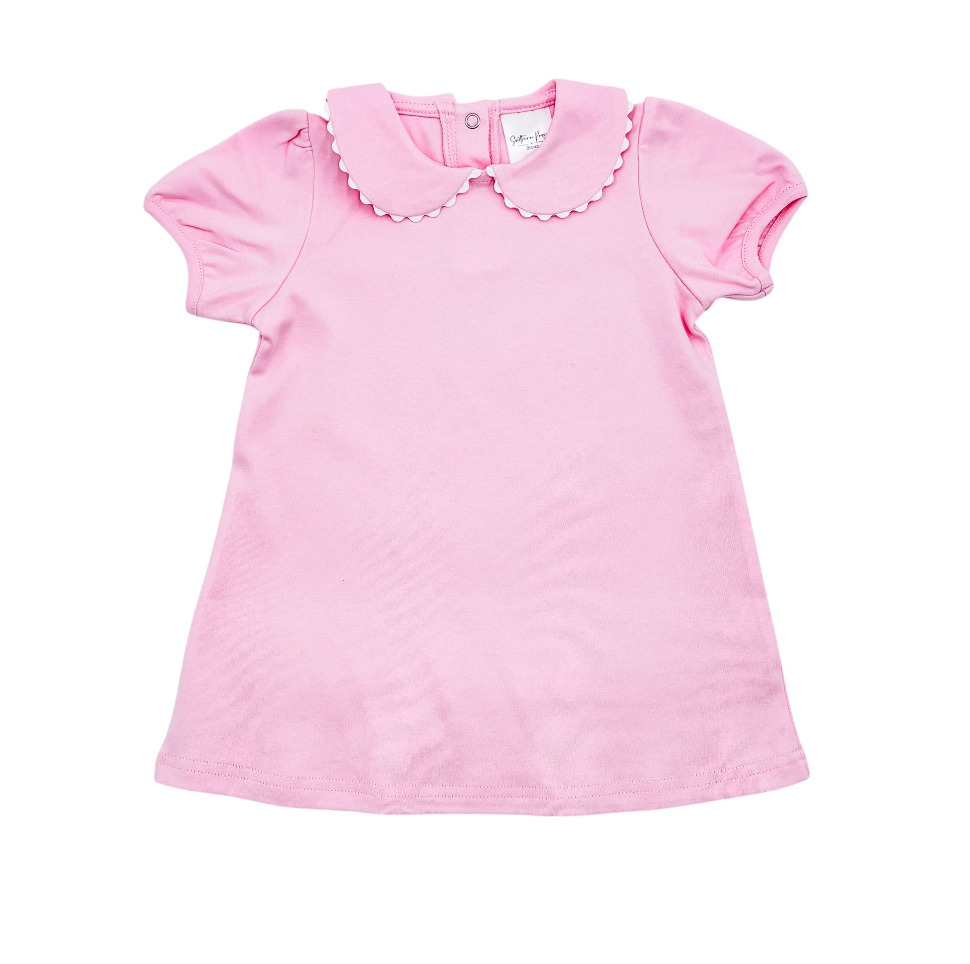 Classic, comfy, and made for everyday sweetness — our scalloped collar knit dresses feature soft puff sleeves, a timeless Peter Pan collar, and a stretchy cotton/spandex blend for all-day comfort. Perfect for school, play, church, and embroidery or monogramming. Available in beautiful pastel shades little girls love.
