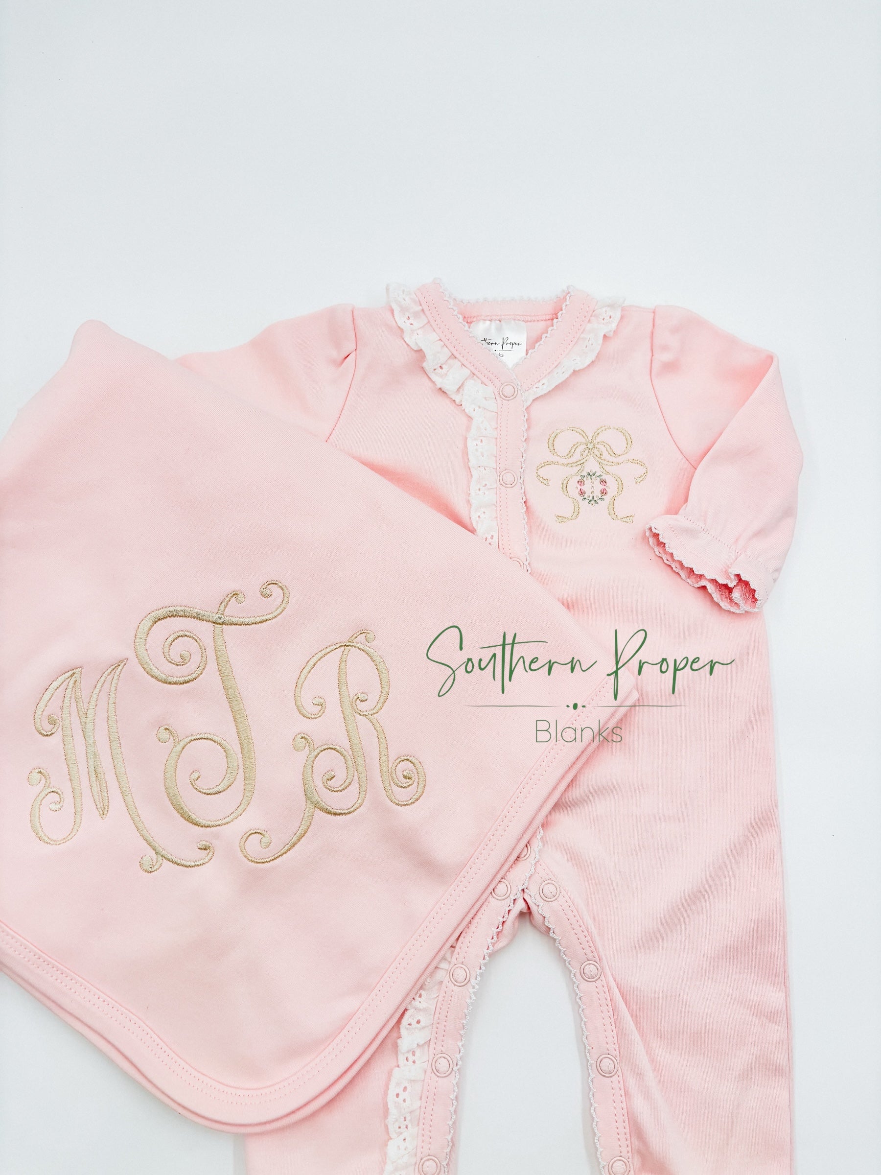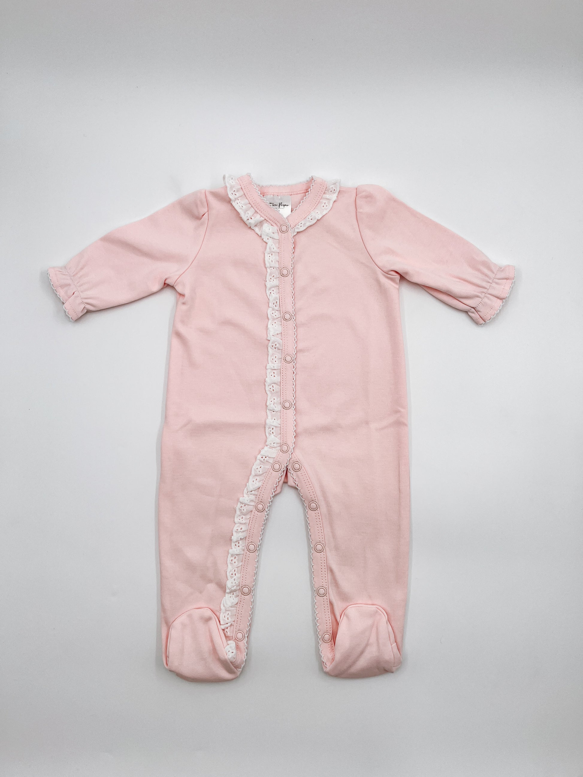 So excited to introduce our new eyelet trim footies! Cuddle those sweet babies in our softest organic cotton material! Eyelet detail added with our picot trim makes the PERFECT little outfit!