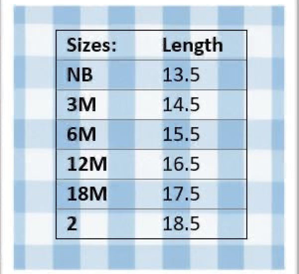 Sizes- NB, 3m, 6m, 12m, 18m and 2t